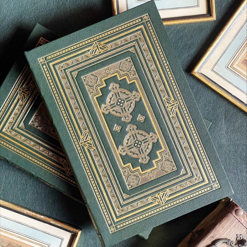 2. Bìa sách bọc bằng da nhân tạo (bonded leather) màu xanh rêu đậm, nhập khẩu trực tiếp từ nhà sản xuất tại Mỹ, có gốc da thật, với các sợi da được bảo vệ bằng lớp sơn phủ gốc nước, ép vân nổi sắc nét, cho hình thức đẹp và bền với thời gian. Đây là dòng da được sản xuất trong điều kiện đảm bảo các yếu tố bảo vệ môi trường, và được sử dụng nhiều cho việc bọc bìa sách Kinh Thánh cùng nhiều loại sản phẩm khác. Ngoài ra, bìa sách được ép nhũ vàng họa tiết đồng nhất cho 2 mặt.