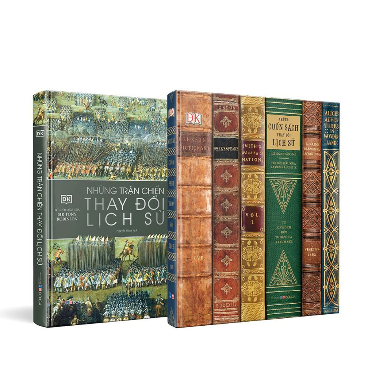 Combo gồm hai ấn phẩm lớn thuộc dòng sách lịch sử minh họa cao cấp của DK, do Công ty Cổ phần Văn hóa Đông A liên kết cùng NXB Dân Trí phát hành tại Việt Nam. Cả hai cuốn đều được in bìa cứng, khổ lớn, in màu toàn bộ, chú trọng trải nghiệm thị giác và khả năng tiếp cận tri thức một cách trực quan, mạch lạc.