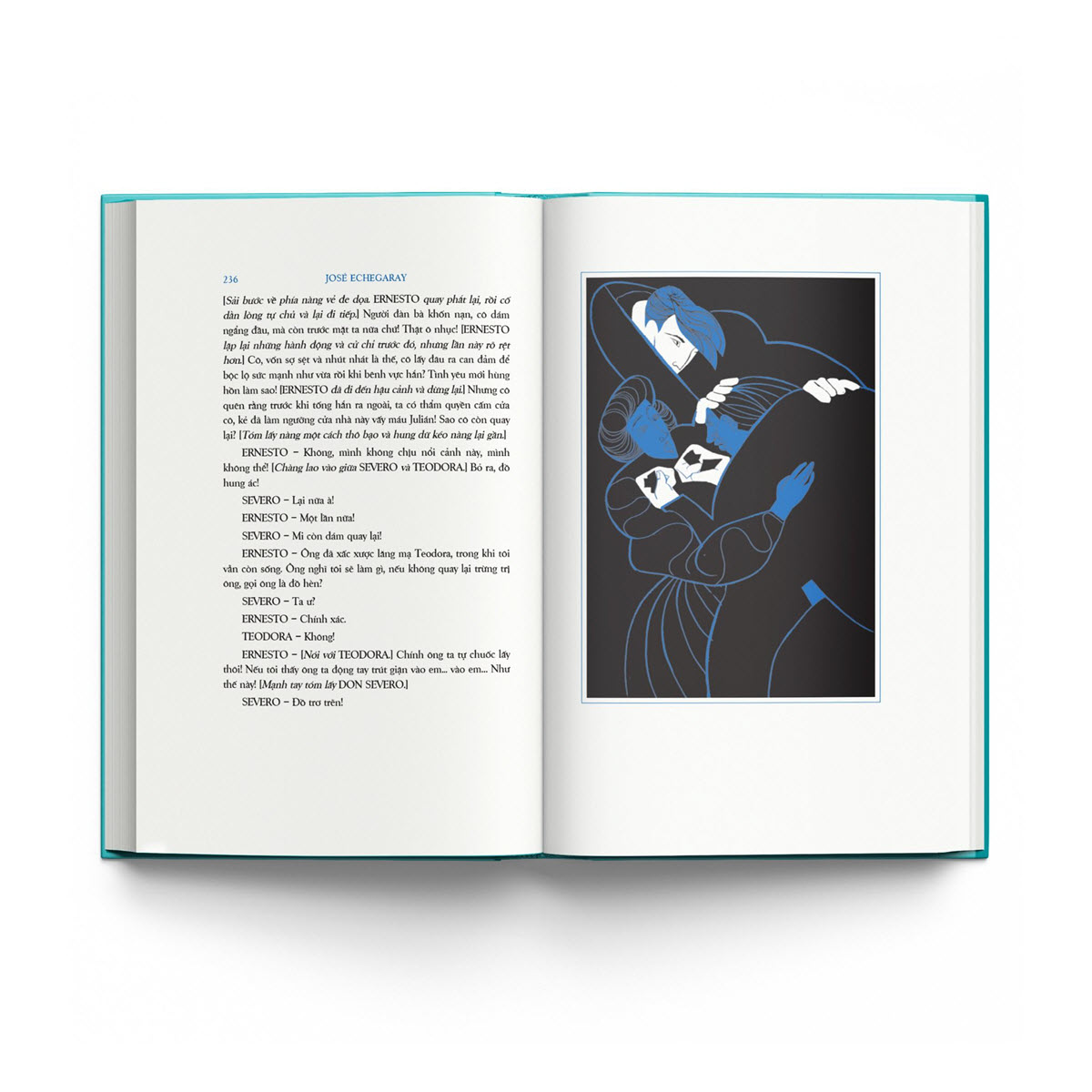 Với độ dày 398 trang trong cuốn sách phiên bản đặc biệt này, ấn bản bao gồm 3 vở kịch kinh điển của José Echegaray là “Điên rồ hay thần thánh”, “Galeoto vĩ đại” và “Con của Don Juan”, tạo nên một bức tranh toàn cảnh về tư duy triết học và kịch nghệ bậc thầy của vị tác giả đoạt giải Nobel.