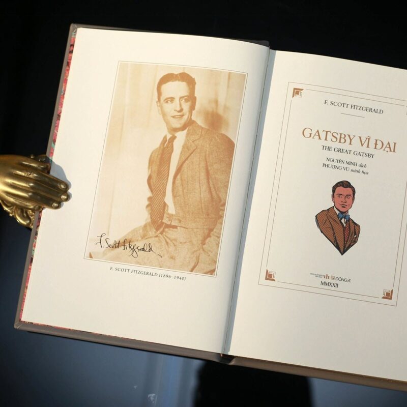 Ấn bản Gatsby vĩ đại do Đông A thực hiện không chỉ dành cho việc đọc, mà còn dành cho sưu tầm. Bìa da microfiber, ép nhũ tinh xảo, mạ cạnh vàng, dấu Ex-Libris và hộp đựng thủy ấn giúp cuốn sách phiên bản giới hạn trở thành một vật phẩm có giá trị thẩm mỹ và lưu giữ lâu dài. Bìa 1 có ba loại tag, bao gồm: tag ly rượu, tag nhân vật cầm ly, tag hai nhân vật được in ngẫu nhiên. Mỗi bản sách được đánh số riêng, khẳng định tính độc bản và giá trị dành cho người sở hữu.