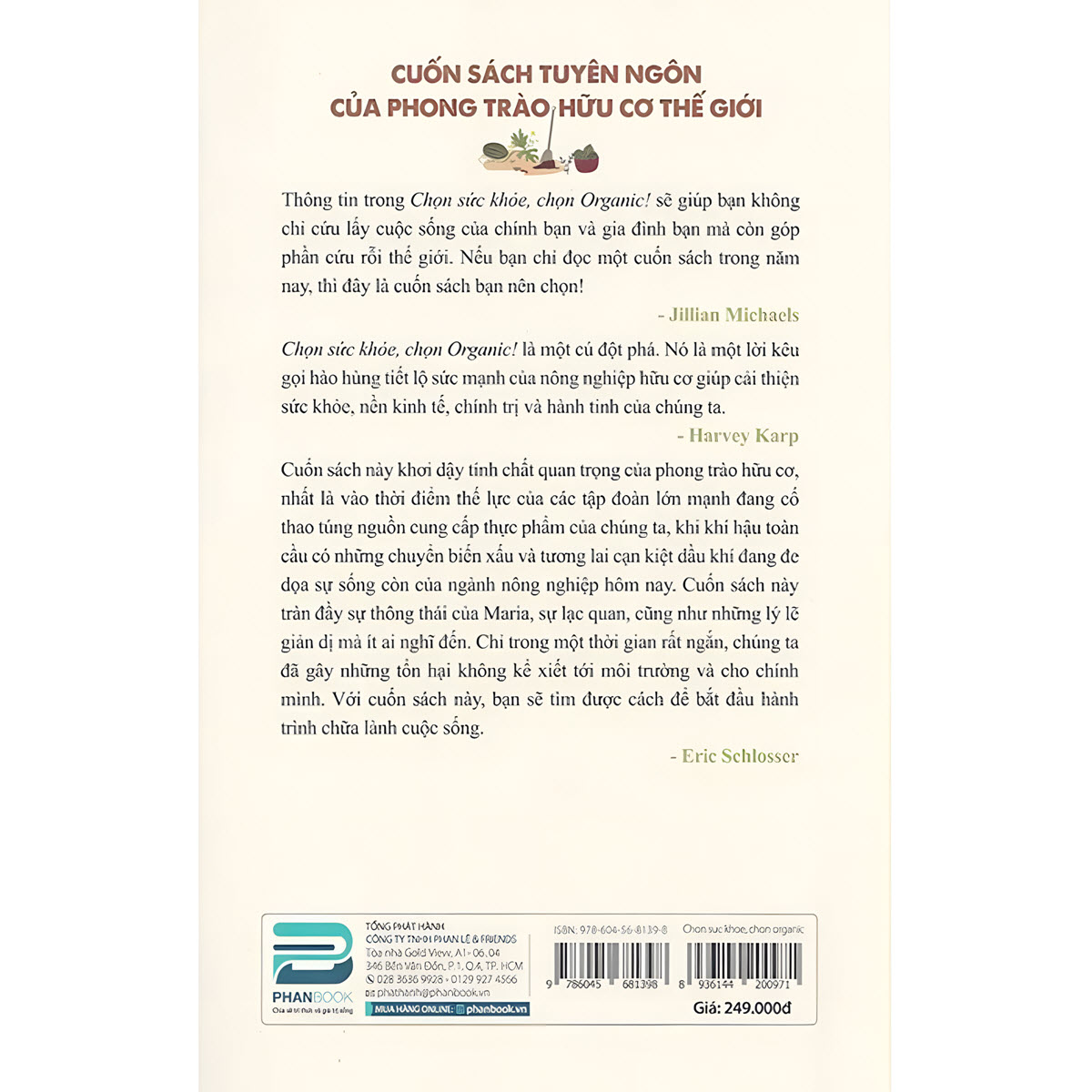 Với cách viết giản dị nhưng giàu chiều sâu, sách chọn sức khỏe, chọn organic giúp người đọc hiểu vì sao lựa chọn hữu cơ không chỉ là quyết định cá nhân cho sức khỏe, mà còn là hành động có ý nghĩa xã hội và môi trường. Đây là cuốn sách phù hợp để đọc chậm, suy ngẫm và bắt đầu những thay đổi nhỏ nhưng bền vững trong đời sống hằng ngày.