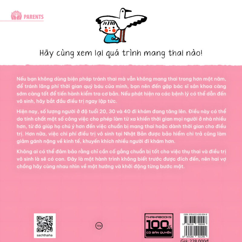 Trước khi đi vào các thông tin xuất bản cụ thể, cuốn sách này cần được nhìn nhận như một tài liệu đồng hành mang tính thực tiễn cao dành cho các cặp đôi đang mong con. Nội dung không chỉ dừng lại ở việc cung cấp kiến thức y khoa, mà được thiết kế để hỗ trợ người đọc hiểu đúng cơ thể mình, chuẩn bị sức khỏe một cách có hệ thống và tiếp cận các phương pháp thụ thai với tâm thế chủ động.