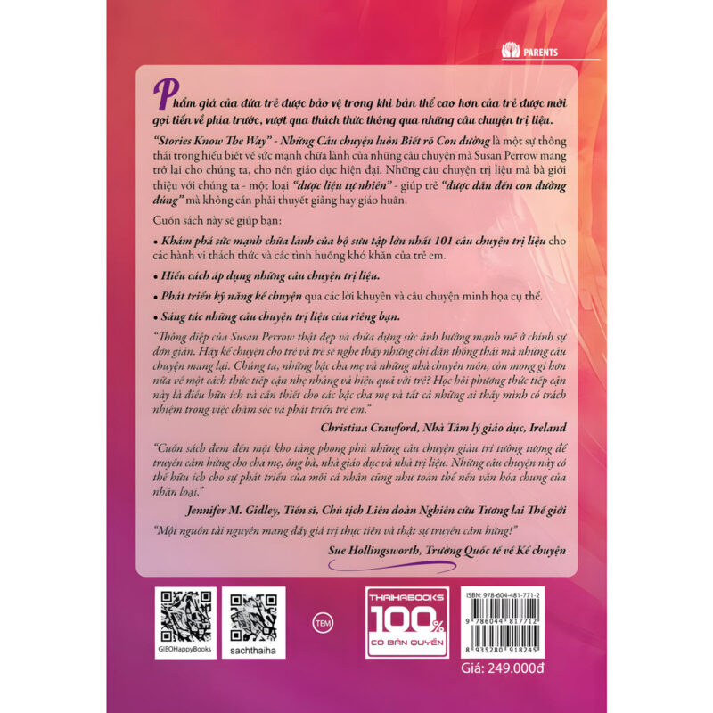 • Tên sách: Kể chuyện trị liệu – 101 Câu chuyện chữa lành giúp chuyển hóa hành vi thách thức và xây dựng kỷ luật tự thân cho trẻ em