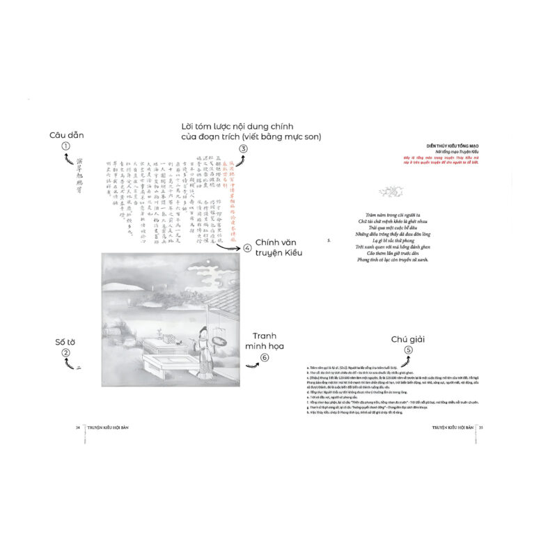 Ấn bản Truyện Kiều hội bản nổi bật nhờ hệ thống chú thích và chú giải được biên soạn công phu, với khoảng 705 lời chú giải khác nhau. Các chú giải không chỉ dừng ở việc giải nghĩa chữ Nôm, mà còn mở rộng sang việc dẫn nguồn điển tích, so sánh dị bản, khảo sát văn bản và tập hợp các lời phê cổ có giá trị. Nhờ đó, người đọc có thể tiếp cận Truyện Kiều không chỉ như một tác phẩm văn chương, mà như một đối tượng nghiên cứu có chiều sâu lịch sử và học thuật.